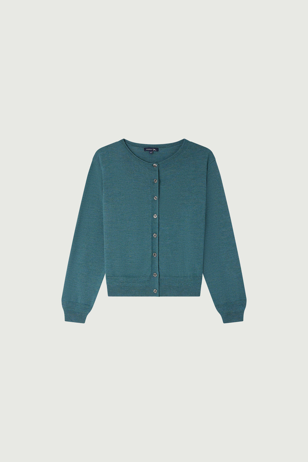 Short square cardigan in merino wool celadon blue