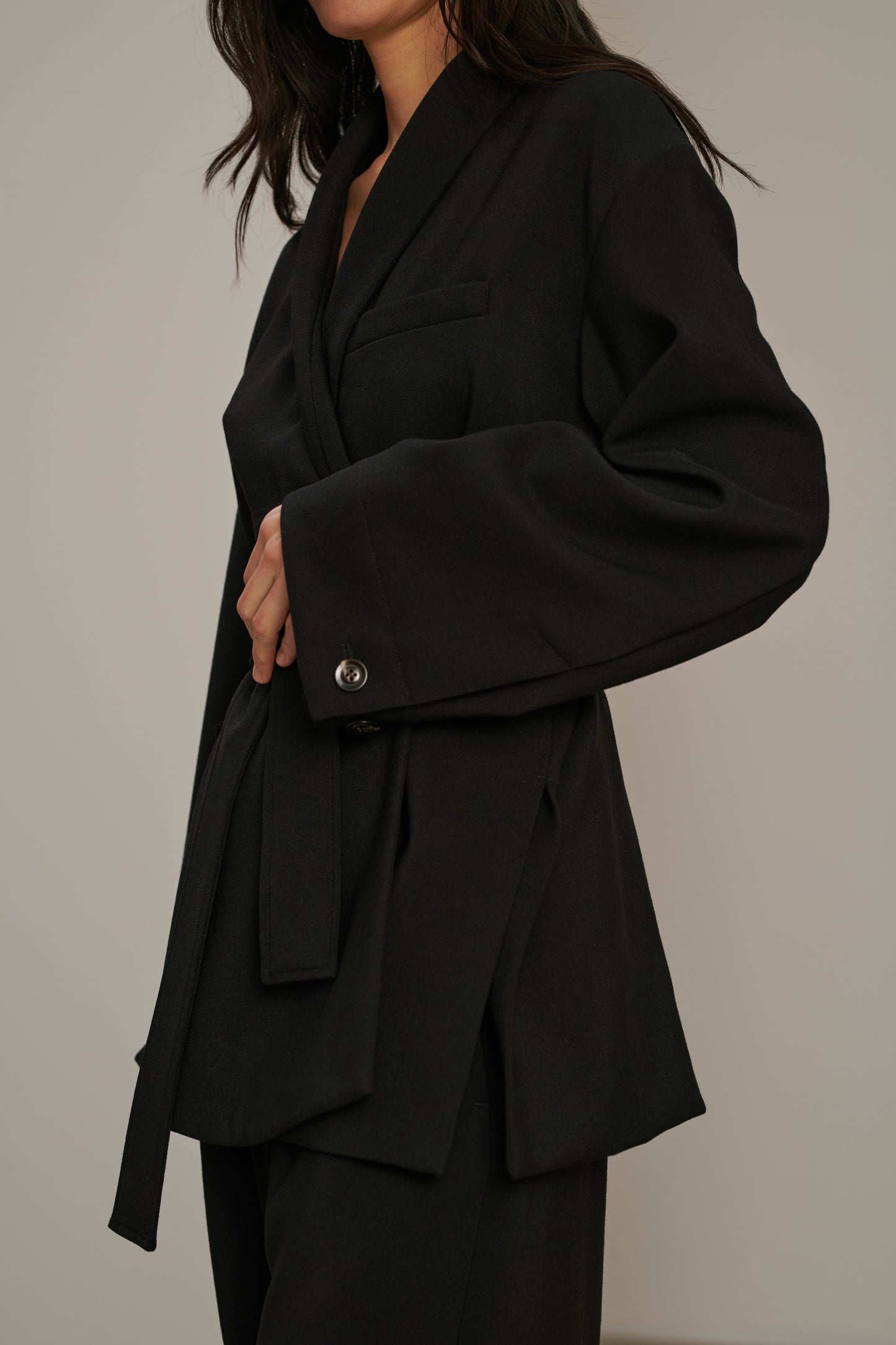 COME is a jacket made from lightweight grain de poudre in a new style. With a relaxed "dressing gown" cut, it's elevated by the use of an elegant fabric.